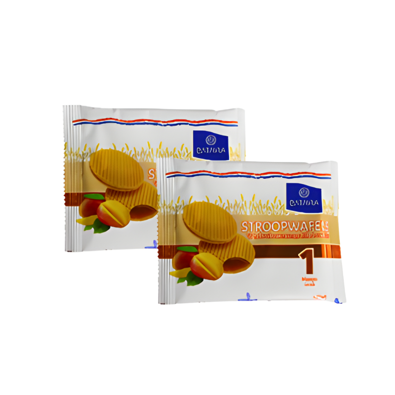 Stroopwafels integral es una fución perfecta entre receta clásica holandesa y el sabor exótico a mango elaborado con dos finas y crujientes galletas tipo waffle, unidas por un relleno suave a base de mango. Al colocar sobre tu taza caliente el relleno se suaviza y libera todo su aroma, creando una experiencia unica de sabor y textura.