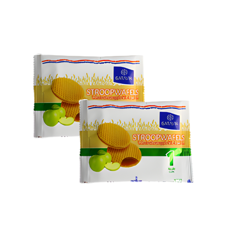 Stroopwafels integral es una fución perfecta entre receta clásica holandesa y el sabor exótico a manzana elaborado con dos finas y crujientes galletas tipo waffle, unidas por un relleno suave a base de manzana. Al colocar sobre tu taza caliente el relleno se suaviza y libera todo su aroma, creando una experiencia unica de sabor y textura.